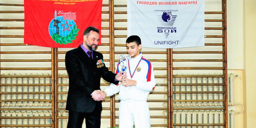 В упорных поединках победителями Первенства Великого Новгорода по Армейскому рукопашному бою в своих возрастных и весовых категориях стали: Гераськин Александр (8-9 лет, до 25 кг, Григоровская школа), Антонов Михаил (8-9 лет, до 30 кг, Григоровская школа), Семёнов Степан (8-9 лет, до 33 кг, СОШ-21), Игнатьев Максим (8-9 лет, до 36 кг, СК «Воин»), Трофимов Лев (10-11 лет, до 33 кг, Центр рукопашного боя-1), Минеев Арсений (10-11 лет, до 36 кг, Центр рукопашного боя-1), Савинов Никита (10-11 лет, до 39 кг, СК «Воин»), Малякин Всеволод (10-11 лет, до 42 кг, Динамо), Шевелёв Александр (10-11 лет, до 45 кг, Центр рукопашного боя-1), Цветков Данил (10-11 лет, свыше 45 кг, Центр рукопашного боя-1), Павлов Даниил (12-13 лет, до 36 кг, СК «Воин»), Павлов Никита (12-13 лет, до 39 кг, Центр рукопашного боя-1), Глинкин Илья (12-13 лет, до 42 кг, Центр рукопашного боя-1), Котосонов Глеб (12-13 лет, до 45 кг, Центр рукопашного боя-1), Невинский Яков (12-13 лет, до 50 кг, СК «Воин»), Степанов Андрей (12-13 лет, до 36 кг, СКАРБ «Дружина»), Мартинчик Фёдор (12-13 лет, свыше 55 кг, СК «Воин»), Пестунов Артём (14-15 лет, до 50 кг, Центр рукопашного боя-1), Мирзаян Тигран (14-15 лет, до 55 кг, Центр рукопашного боя-1), Степанов Даниил (14-15 лет, до 60 кг, Центр рукопашного боя-1), Калашников Иван (14-15 лет, до 65 кг, Центр рукопашного боя-1), Анцыгин Павел (14-15 лет, до 70 кг, Центр рукопашного боя-1), Андреев Игорь (16-17 лет, до 55 кг, Центр рукопашного боя-1), Антонов Иван (16-17 лет, до 65 кг, Центр рукопашного боя-1), Ручкин Даниил (16-17 лет, до 70 кг, Чудово), Арутюнян Тигран (16-17 лет, до 75 кг, Центр рукопашного боя-1), Иванов Максим (16-17 лет, до 80 кг, Центр рукопашного боя-1), Бортнянский Даниил (16-17 лет, свыше 80 кг, СК «Воин»)