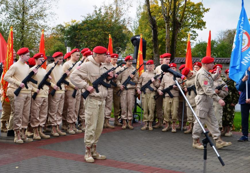 В почетном карауле у монумента на церемонии открытия стояли юнармейцы Волховского района под руководством начальника штаба Михаила Казакова.