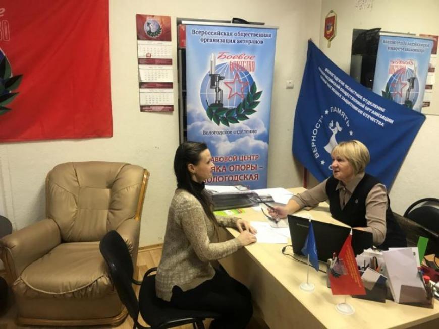 В рамках проекта «Точка опоры — Вологодская область», реализуемого с использованием президентского гранта, 28 декабря специалисты Вологодского областного отделения «БОЕВОГО БРАТСТВА» оказали бесплатную юридическую помощь члену семьи ветерана боевых действий Ольге Корешковой, проживающей в Вологде.