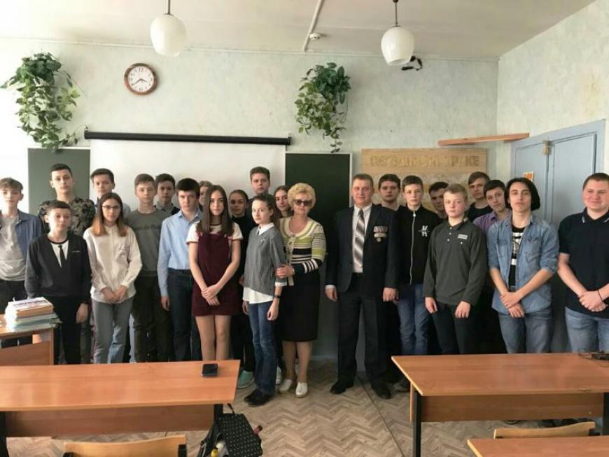 В Железногорске Курской области ветеран городского отделения «БОЕВОГО БРАТСТВА» Алексей Догадин провел урок мужества для учеников школы №3.