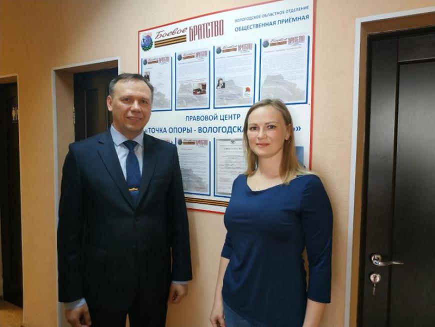 Череповецкое районное отделение «БОЕВОГО БРАТСТВА» Вологодской области в рамках проекта «Точка опоры — Вологодская область», реализуемого с использованием гранта президента Российской Федерации на развитие гражданского общества, предоставленного Фондом президентских грантов, и по условиям соглашения с региональным отделением «Единой России» 24 апреля открыло свою общественную приемную на базе приемной Череповецкого отделения «Единой России».