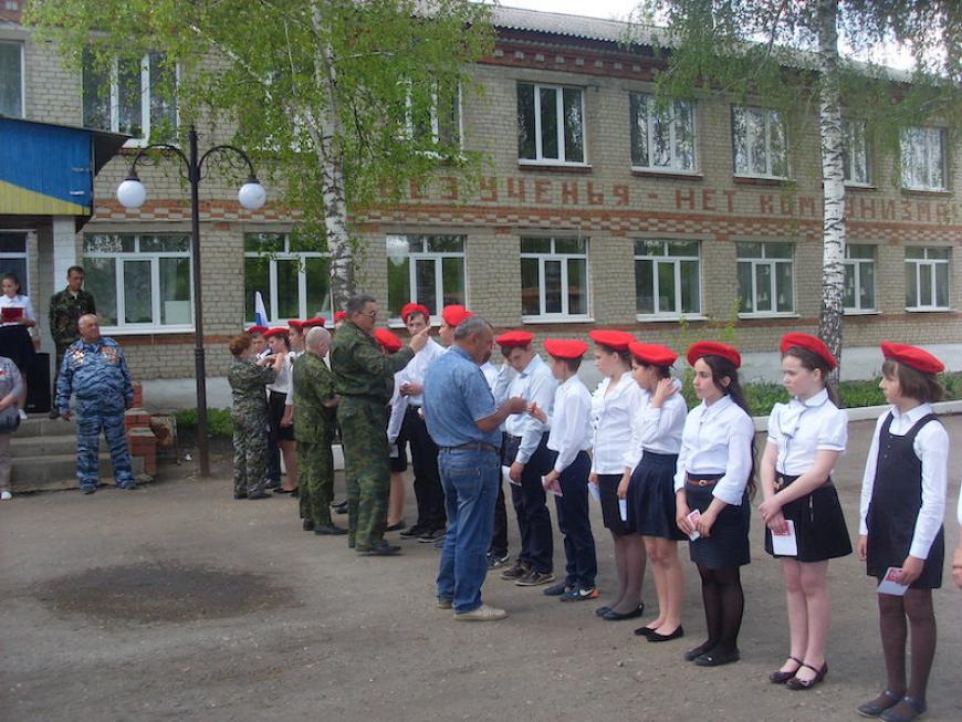 В Курской области члены Тимского местного отделения «БОЕВОГО БРАТСТВА» 7 мая стали почетными гостями в Волобуевской средней школе. Ветераны принимали новый отряд «Юнармии», в который вступили учащиеся 5-7-х классов.