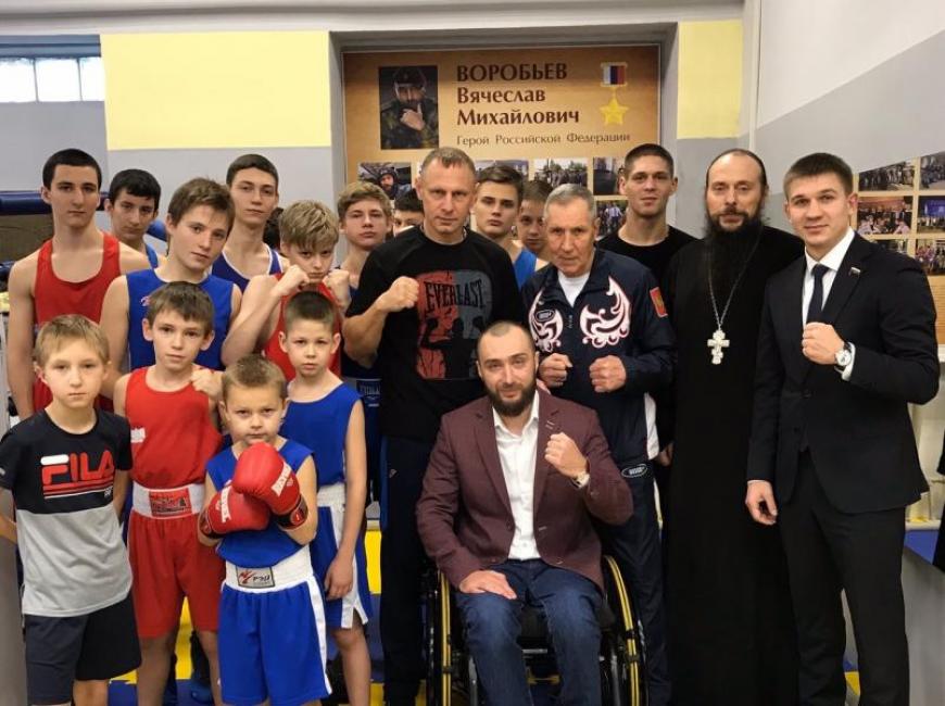 Руководитель Белгородского отделения Всероссийской организации «БОЕВОЕ БРАТСТВО», Герой России Вячеслав Воробьев открыл зал бокса после капитального ремонта.