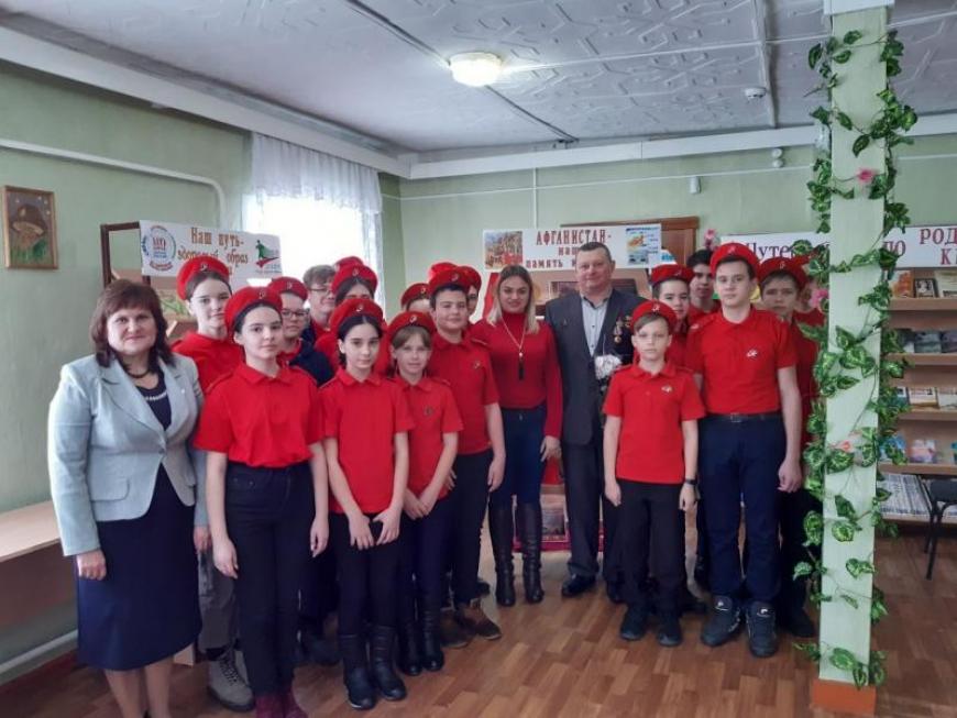 Воин-интернационалист, член правления Пристенского районного отделения «БОЕВОГО БРАТСТВА» Курской области Виктор Чехов провел урок мужества, посвященный 31-годовщине завершения спецоперации советских войск в Афганистане, для юнармейцев в районной детской библиотеке.