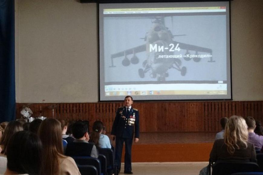 Боевому летчику, участнику боевых действий на Северном Кавказе, в ряде других горячих точках страны и мира подполковнику в отставке Анатолию Исаченко было что рассказать ребятам. Он рассказал им о становлении и боевом пути наших Вооруженных сил, о том, что такое патриотизм, о боевых традициях нашей армии и флота, о необходимости быть готовым выступить на защиту своего Отечества, поделился с учащимися своими воспоминаниями о военной службе, об участии в боевых действиях.