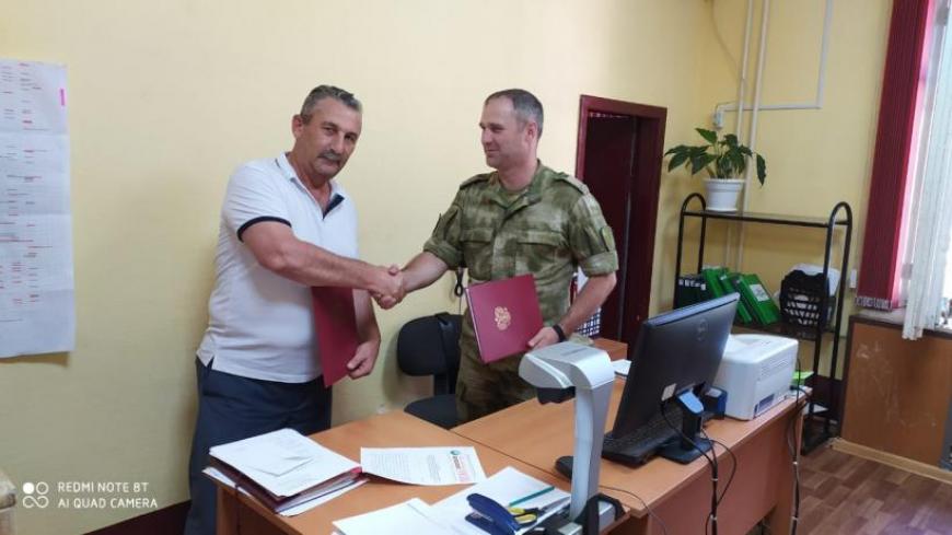 Руководитель Кабардино-Балкарского республиканского отделения Всероссийской общественной организации ветеранов «БОЕВОЕ БРАТСТВО» Барасби Гелястанов 10 сентября подписал соглашение о сотрудничестве с командиром полка войсковой части 3723 полковником Нуридом Макаевым, который действовал согласно приказу директора Федеральной службы войск национальной гвардии Российской Федерации от 25.07.2016 года №46 «Об утверждении единого типового устава органа управления соединения и воинской части ВНГ РФ».