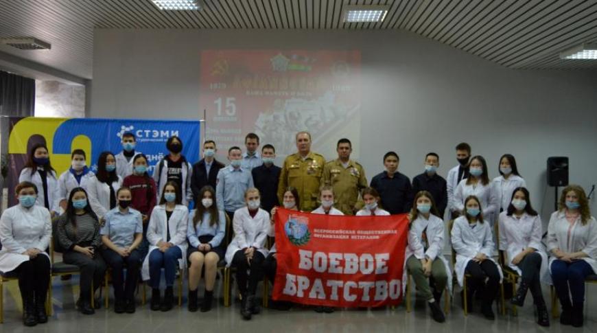Продолжается активное сотрудничество ветеранов боевых действий Саяногорска с подрастающим поколением. 17 февраля на встречу с участником военных действий в Афганистане Евгением Щетининым и награжденным орденом Мужества участником локального конфликта в Чечне Юрием Панюта пришла очередная группа студентов техникума.