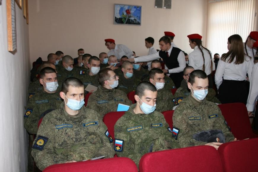 Юнармейцы, учащиеся 7-го «А», выступили с музыкально-литературной композицией «Вам слава и честь…» перед военнослужащими по призыву. В своём выступлении они использовали презентацию о празднике 23 февраля, о его истории, рассказали о выпускниках школы, которые были участниками локальных конфликтов XX-XXI веков: Дмитрий Брыкаев, Роман Можаев, Александр Нестеров, Евгений Долгин. В ходе рассказа и презентации прозвучали песни об армии. На встрече присутствовали офицеры запаса, участвовавшие в горячих точках.