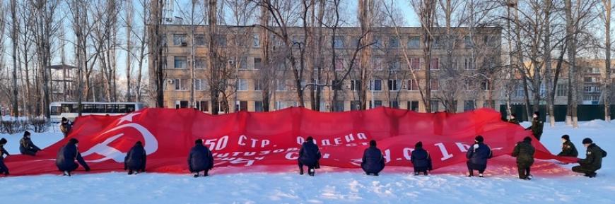 Участники митинга развернули на плацу техникума копию Замени Победы площадью 200 кв.м.