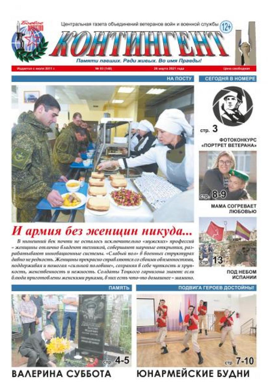 В Оренбурге тиражом в 3473 экземпляров вышел в свет мартовский номер центральной газеты объединений ветеранов войн и военной службы «Контингент», учредителем которой является Оренбургское региональное отделение Всероссийской общественной организации ветеранов «БОЕВОЕ БРАТСТВО».