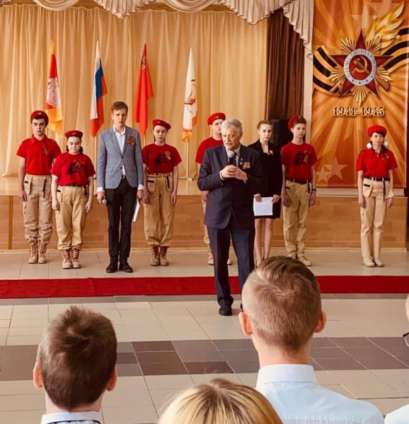 Председатель Совета ветеранов, член Егорьевского отделения Московского областного «БОЕВОГО БРАТСТВА» Георгий Кислов выступил перед учащимися и рассказ о военных и после военных годах нашей страны и городского округа Егорьевск.