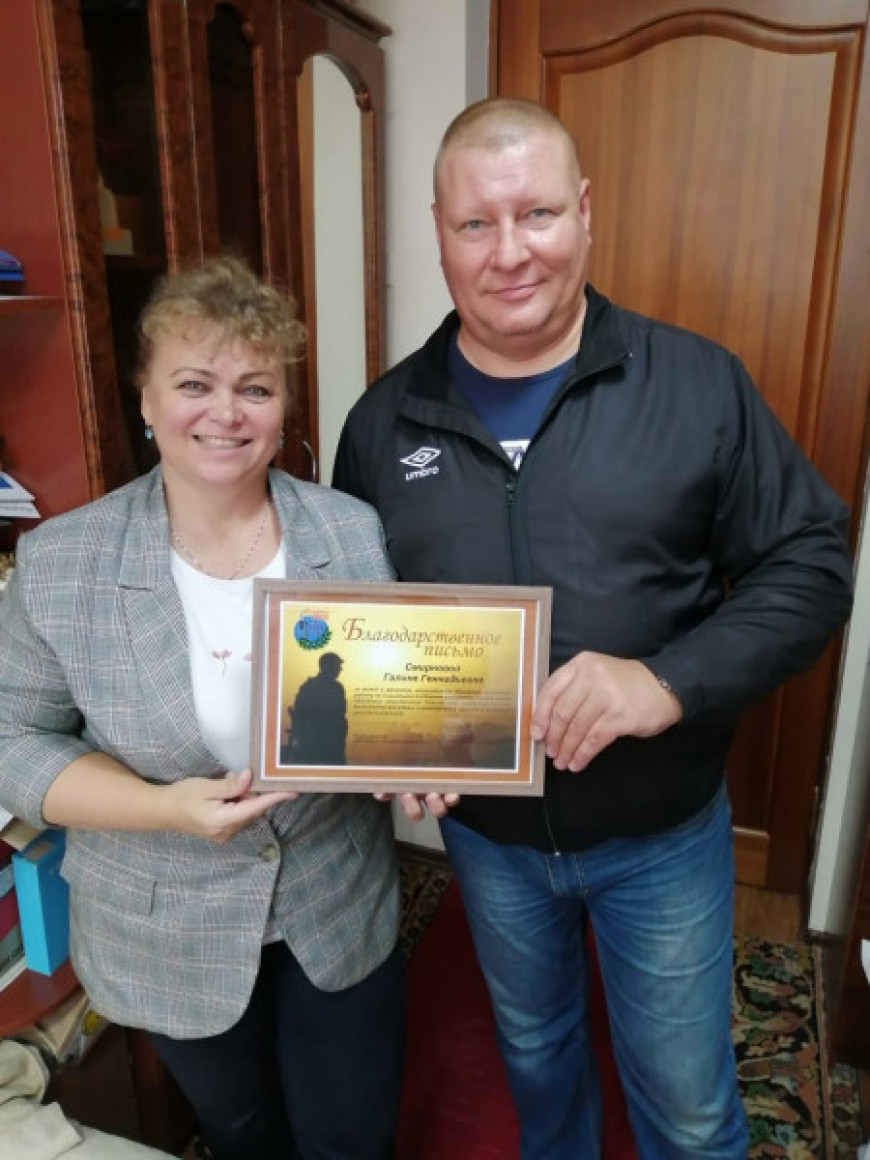 Они обсудили текущие и будущие планы, проекты ветеранской организации, а также организационную, консультационную помощь, которую может оказать администрация Великого Новгорода. В завершение встречи Алексей Иванов вручил благодарственное письмо Галине Смирновой за активную работу по социальной поддержке ветеранов, семей погибших защитников Отечества, патриотическое воспитание молодежи и увековечение памяти подвигов российских воинов.