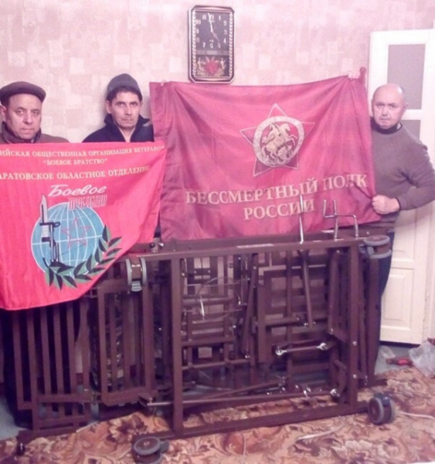 В транспортировке кровати до квартиры помощь оказали члены Пугачевского «БОЕВОГО БРАТСТВА» Сергей Кушкарев, Стариков Игорь, Степанов Игорь и его сын Владислав.