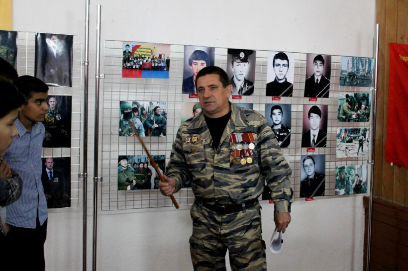 В заключение ветераны провели 4 экскурсии для 45 учеников 5-8 классов Доможаковской школы по передвижной фотовыставке с рассказами ученикам о героях Великой Отечественной войны, героях локальных войн на территории Афганистана и Северного Кавказа.