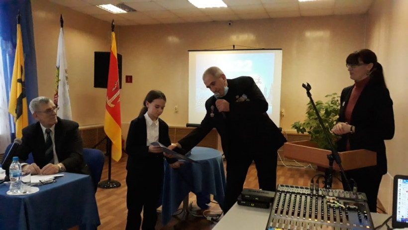 На конференции руководитель Угличского местного отделения организации «БОЕВОЕ БРАТСТВО» вручил диплом лауреата и памятную медаль лауреату конкурса «Память сильнее времени» Екатерине Кузнецовой, ученице 4 класса школы №5.