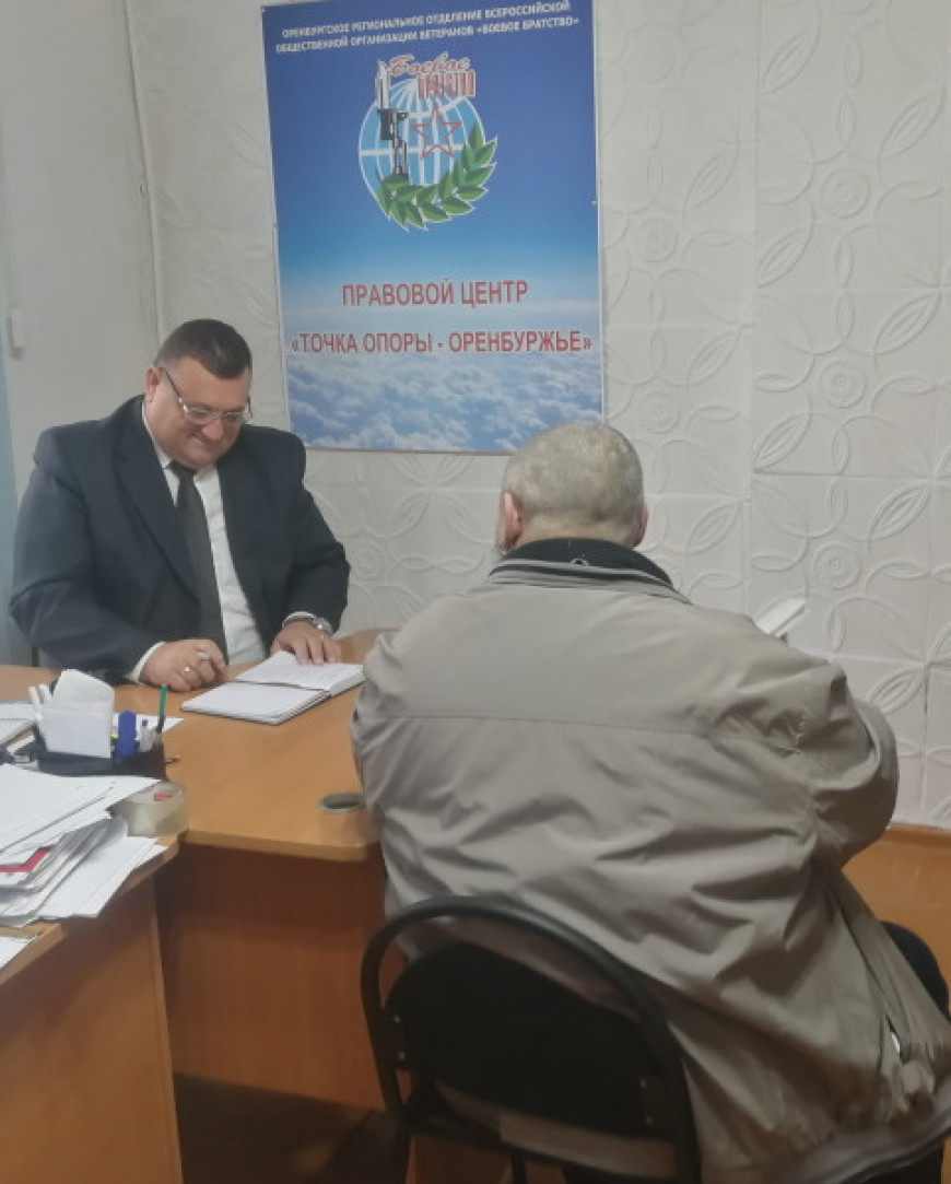 Сотрудники правового центра «Точка опоры – Оренбуржье» Виктор Пятин и Руслан Мадьяров провели консультацию с ветераном боевых действий, инвалидом 2 группы (военная травма) Игорем В. Он обратился с жилищным вопросом. Состоит на учете на получение жилья под № 2009.