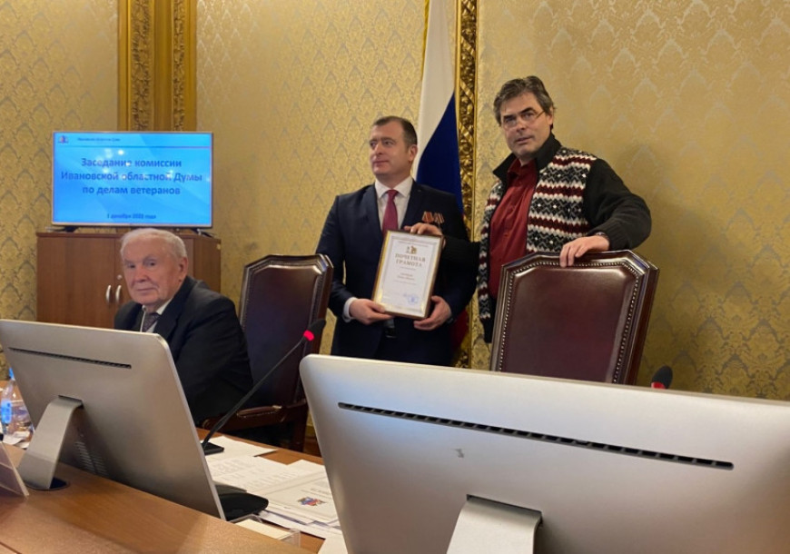 1 декабря состоялось заседание комиссии Ивановской областной Думы по делам ветеранов. В нем участвовали председатель Ивановского городского «БОЕВОГО БРАТСТВА» Алексей Ананьев и член отделения, заместитель председателя регионального отделения военно-исторического общества Евгений Григорьев.