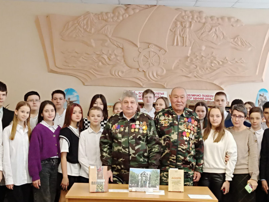 15 февраля в библиотеке №5 Кировского района в Волгограде ветераны городского отделения «БОЕВОГО БРАТСТВА» Александр Смирнов и Олег Жумаев провели урок мужества с учениками лицея №10.