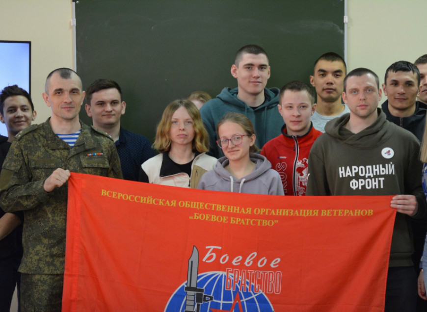 Член «БОЕВОГО БРАТСТВА» и руководитель военно-спортивного патриотического центра «Характер» Александр Проскуряков поделился историей своего пребывания в зоне проведения Специальной военной операции, рассказал студентам о трудностях нахождения в сложной военной обстановке и важности умения постоять за своих родных и близких.