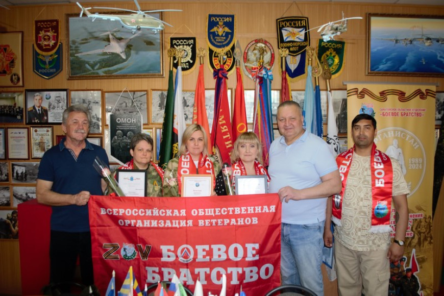 Они вручили благодарственные письма от губернатора Саратовской области Романа Бусаргина одному из руководителей группы «Тыл рядом с фронтом» Виктории Афанасьевой, руководителю группы «Помогаем вместе» Елене Бакалдиной. Руководителю группы «Поддержим наших. Разведке слава» Ольге Полянской вручили почетную грамоту от председателя «БОЕВОГО БРАТСТВА», Героя Советского Союза Бориса Громова.