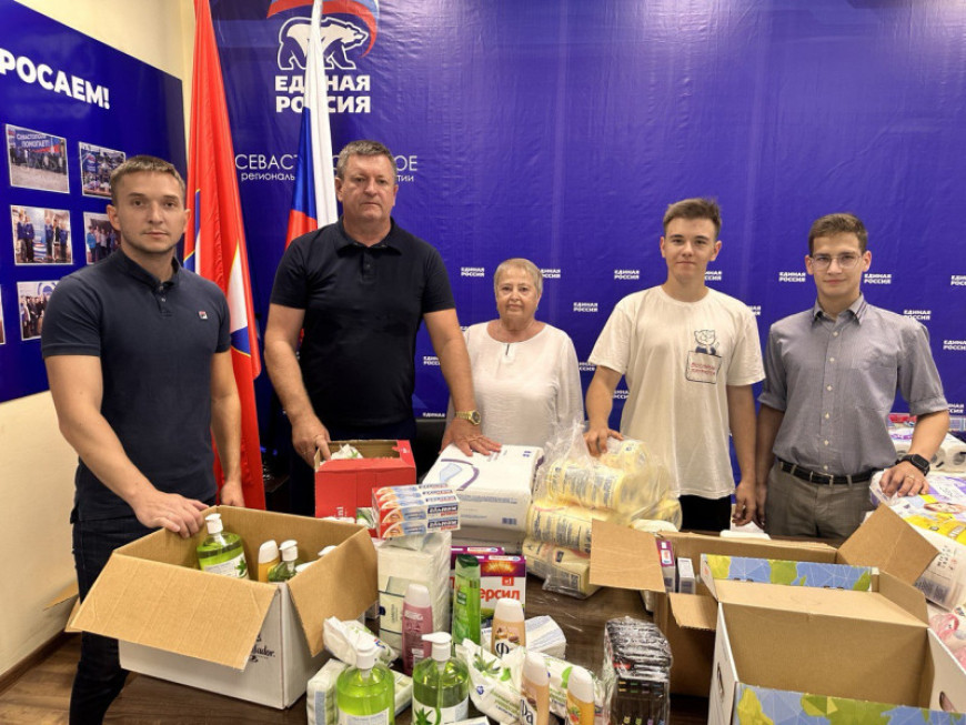 9 августа член Совета Севастопольского «БОЕВОГО БРАТСТВА», депутат Заксобрания города Вячеслав Камзолов передал зубные пасты и щетки, мыло, гель для душа, шампуни, бритвенные станки, пену для бритья, влажные салфетки, туалетную бумагу, детские подгузники, стиральный порошок в Севастопольское региональное отделение партии «Единая Россия».