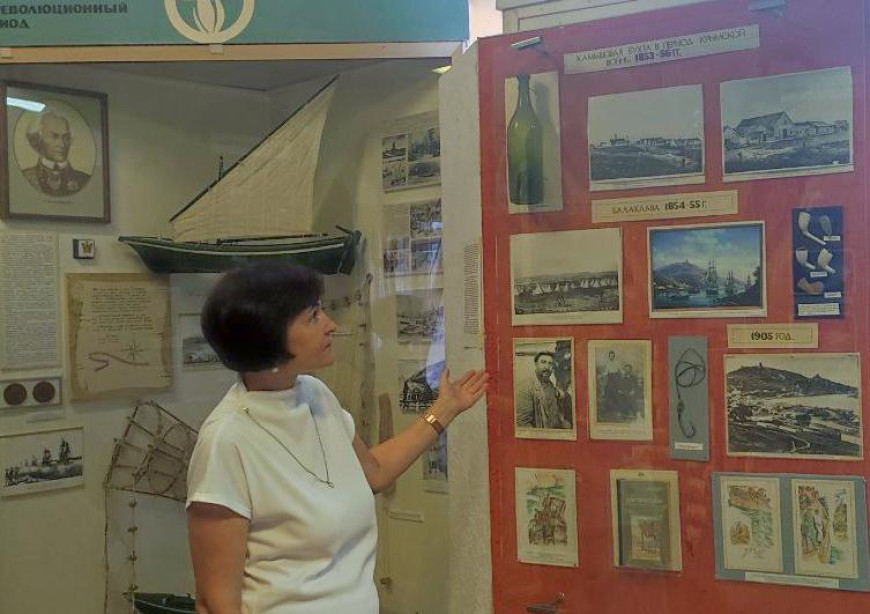 Вниманию школьников была предложена обзорная экскурсия по залам музея рыбаков, где представлена экспозиция «Камышовая бухта в период Крымской войны». В экспозиции представлены предметы быта того периода и фотографии рисунков с натуры, сделанные русским художником Николаем Бергом во время войны.