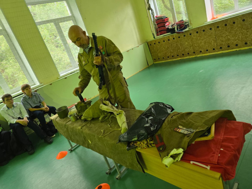 Занятие с 260 учениками старших классов провел руководитель Уссурийского отделения «БОЕВОГО БРАТСТВА» Александр Коломеец. Ветеран рассказал о героизме солдат, которые защищали Россию во все времена.