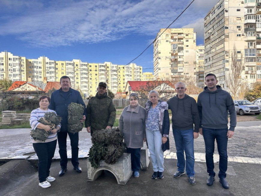 В передаче маскировочных сетей участвовали руководитель «Волонтерской роты» Таисия Пискайкина, член совета Севастопольского «БОЕВОГО БРАТСТВА», депутат Законодательного собрания Вячеслав Камзолов и член ветеранской организации Игорь Сухно.