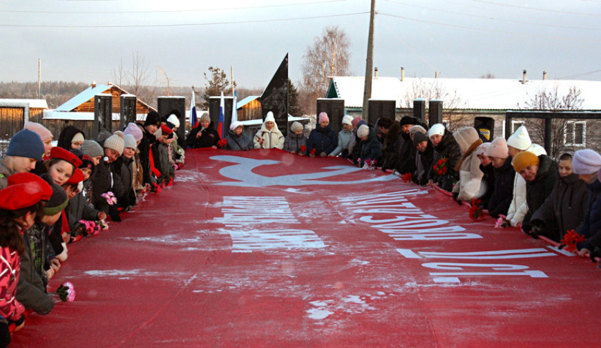 Ветераны Пинежского районного отделения «БОЕВОГО БРАТСТВА» организовали проведение акции «Память сильнее времени», в ходе которой участники митинга, односельчане, школьники и ветераны развернули увеличенную копию Знамени Победы.