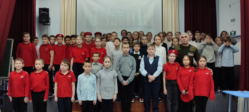 В начале встречи ребята посмотрели короткий фильм «Тайна афганской записки» о девочке из Чайковского, которая сумела перевести с персидского на русский язык записку афганского солдата и таким образом для неё началась дружба с ветеранами войны в Афганистане. Затем пошёл разговор о защитниках Отечества, а также о причинах СВО