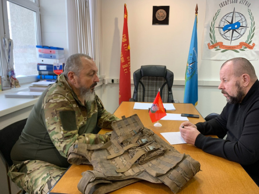 Андрей Сенин организовал передачу в зону СВО двух автомобилей ГАЗ 2131. На встрече решили вопросы технического обслуживания машин и их переоборудования для госпиталей. Также боец передал для музейной экспозиции бронежилет.