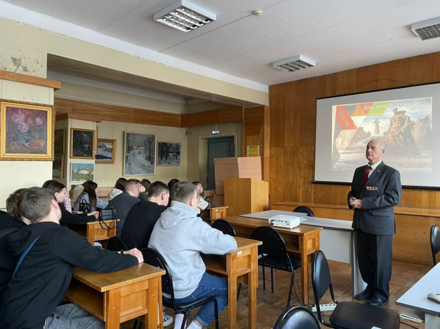 Александр рассказал студентам о ходе Сталинградской битвы, о мужестве советских воинов, сталинградцев, о мудрости военачальников, о влиянии итогов битвы на ход Великой Отечественной войны и всемирно-историческом значении битвы, показал документальные кадры о ней.