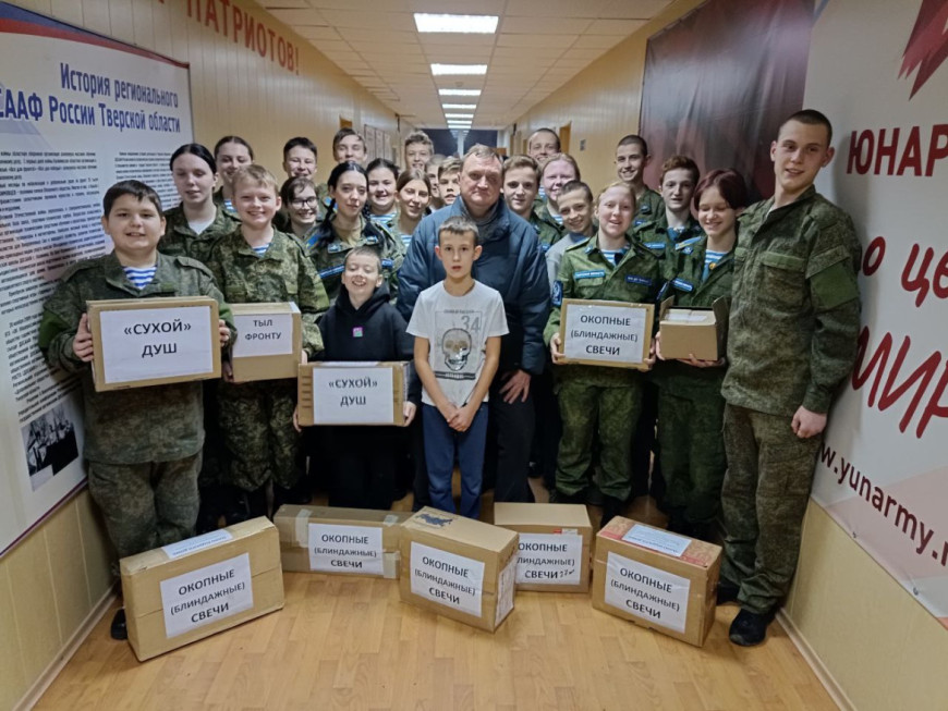 31 января воспитанники подшефного Тверскому «БОЕВОМУ БРАТСТВУ» военно-патриотического клуба десантного профиля «Сириус» имени Героя Советского Союза Алексея Маресьева передали через ветеранов на фронт более 250 окопных свечей, более 120 комплектов «сухого душа» и и 20 мультитулов для последующей доставки на передовую в Белгородскую область, ЛНР и ДНР.