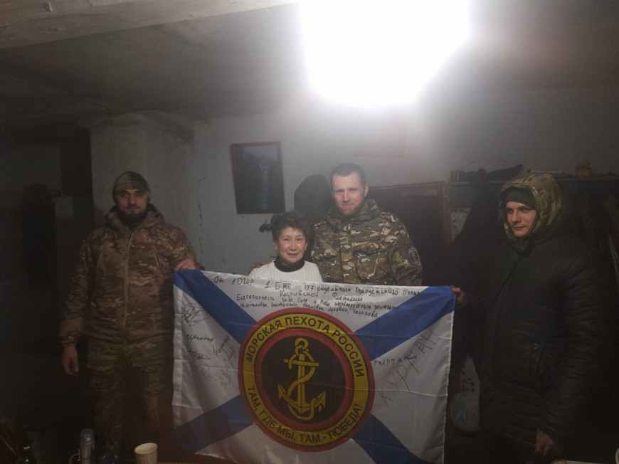 Морским пехотинцам он привез теплые вещи, предметы личной гигиены, продукты питания и строительные материалы.