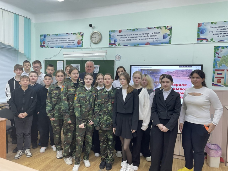 13 февраля, в преддверии годовщины вывода советских войск из Республики Афганистан, воин-интернационалист, ветеран Оренбургского районного отделения «БОЕВОГО БРАТСТВА» Гумер Зайнетдинов провел урок мужества с 20 учащимися 10-го класса школы села Покровка.