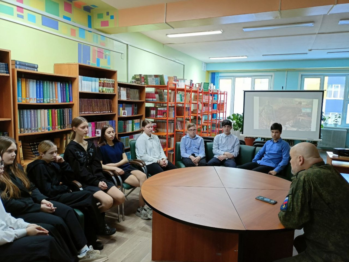 Первая встреча прошла в городской библиотеке семейного чтения №3. Она называлась «Верны присяге мы и выполнен приказ» и была посвящена Дню памяти о россиянах, исполнявших служебный долг за пределами Отечества. Ученики школы №9 побывали на встрече с ветераном боевых действий, руководителем местного отделения «БОЕВОГО БРАТСТВА» Валерием Шабуриным и участником Специальной военной операции Станиславом Смородиным.