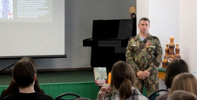 Председатель правления Ряжского отделения «БОЕВОГО БРАТСТВА» Александр Захаров поделился с учениками своими воспоминаниями о контртеррористической операции на Северном Кавказе. Также он рассказал о руководителе Ряжского отделения БОЕВОГО БРАТСТВА, воине-интернационалисте Олеге Бирюкове.