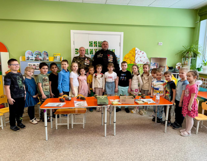 Двадцать дошколят услышали рассказ Дмитрия Орлова о Российской армии, военных профессиях и боевой технике. Дети с интересом рассмотрели, что находится внутри солдатского сухпайка и узнали какие качества необходимо иметь настоящему защитнику Родины. Подобные встречи помогают в патриотическом воспитании детей и воспитывают у них уважительное отношение к ветеранам и людям военных профессий.