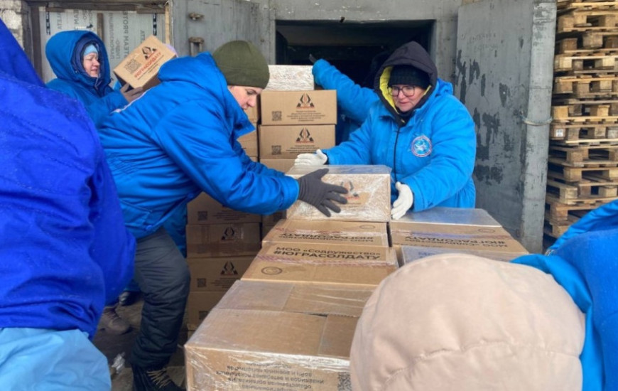 24 февраля доставлена гуманитарная помощь из Югры для жителей новых территорий. Добровольцы сразу же приступили к разгрузке.