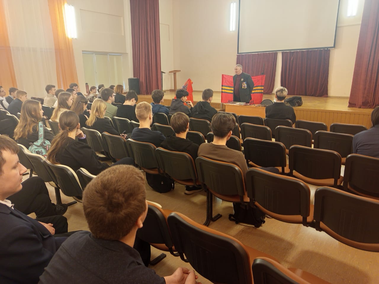 18 февраля заместитель председателя правления Калужского городского отделения «БОЕВОГО БРАТСТВА», ветеран военной службы подполковник в отставке Александр Трусевич провел урок мужества на Посту №1 в Калуге с учащимися средней школы №1.