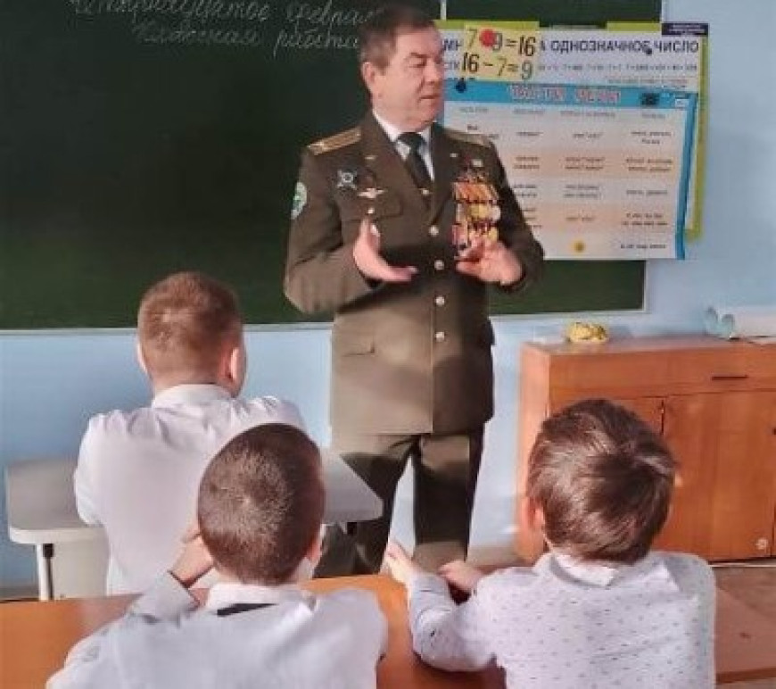 Ветеран Вячеслав Хомутов рассказал школьникам о профессии защитника Отечества, о мужестве советских и российских воинов, поделился воспоминаниями о своем участии в войне в Афганистане, боевых действиях на Северном Кавказе, ликвидации аварии на ЧАЭС