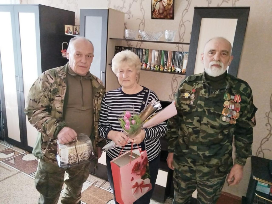 8 марта руководитель Солнцевского отделения «БОЕВОГО БРАТСТВА» Курской области Сергей Потёмкин совместно с представителем ВС РФ поздравили с Международным женским днём 8 Марта женщин-ветеранов Н.Г. Рыженкову и В.Н. Сечину.