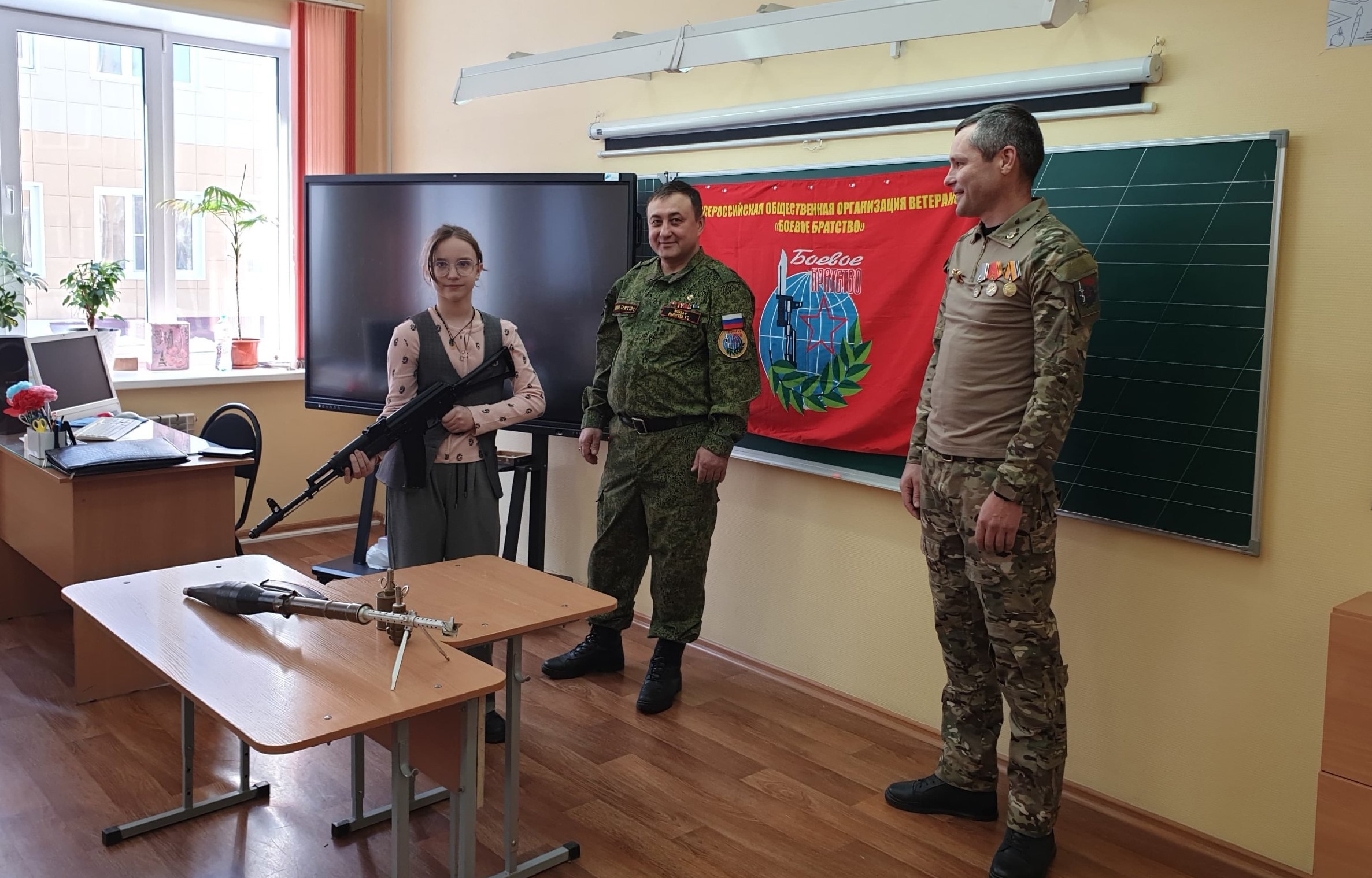 Ветераны рассказали школьникам о своем боевом опыте, познакомили учеников с макетом оружия и ответили на вопросы.