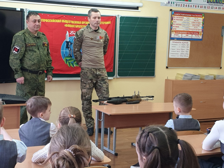 11 марта в Омске руководитель первичного отделения «БОЕВОГО БРАТСТВА» Кировского, ветеран боевых действий на Северном Кавказе Тахир Нанигеев и ветеран боевых действий на Северном Кавказе, член Совета «БОЕВОГО БРАТСТВА» Советского округа Омска Дмитрий Синицкий провели урок мужества в школе №7.