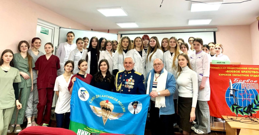 14 марта ветеран Курского отделения «БОЕВОГО БРАТСТВА» Юрий Костин посетил Курский медицинский колледж и провел урок мужества совместно с представителем ассоциации «Соколы Маргелова» для студентов.
