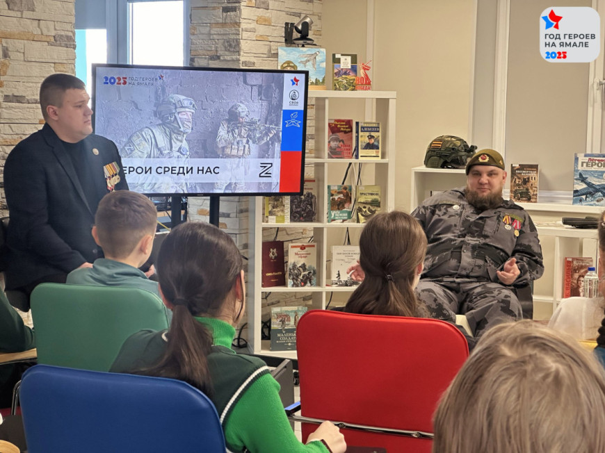 20 марта в библиотеке Муравленко состоялась встреча школьников 7-9 классов с участниками Специальной военной операции, членами общественных организаций «БОЕВОЕ БРАТСТВО» и Ассоциации ветеранов СВО — Кириллом Клевачёвым и Виталием Боровским.