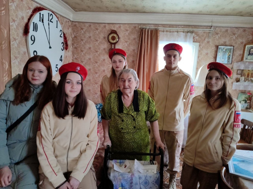 Вместе с медалями юнармейцы и ветеран вручали подарки Вере Алексеевне, Нине Ивановне, Евдокии Григорьевне, Дамире Гарифовне, Марии Андреевне, Евдокии Федотовне, Нине Ивановне — труженицам тыла, которые ковали Победу в тылу. Они работали на производстве по ремонту техники, на сельхозработах. Ребята читали стихи, а женщины угощали их чаем.