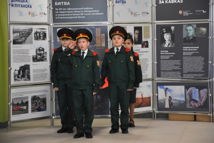 Об идее создания проекта «История сквозь объектив» и посещении Луганской Народной Республики оренбургскими поисковиками рассказал Сергей Ельчанинов, а затем кадет ознакомили с информацией о ключевых сражениях Великой Отечественной войны: битвах за Донбасс, Сталинград, Кавказ, разгроме советскими войсками немецко-фашистских войск в Курской битве, зачитали имена погибших красноармейцев, обнаруженных поисковиками в результате полевой и архивной поисковой работы. Фотовыставка дополнена мобильной экспозицией, где размещены экспонаты, привезенные поисковиками из экспедиций, проходивших в местах боев Великой Отечественной войны.