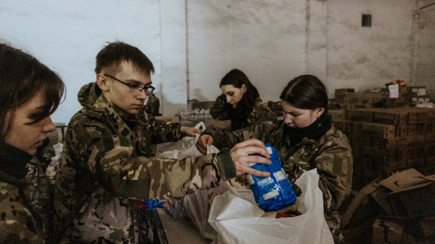 При работе на складе волонтеры загрузили пять машин с оборудованием для видеосъемки. Была оказана помощь в реорганизации склада. Также было сформировано 385 продуктовых, 121 гигиенический и 110 канцелярских наборов. Загрузили 100 продуктовых наборов для дальнейшей доставки.