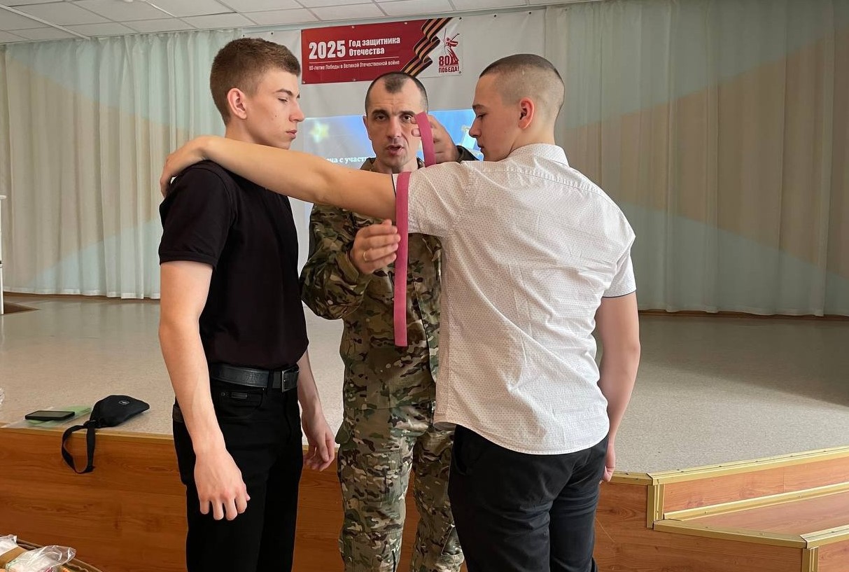 31 марта в Горячеключевской школе Омского района член совета Омского отделения «БОЕВОГО БРАТСТВА» Александр Проскуряков организовал мастер-класс по тактической медицине для учеников 8-го и 10-го классов.